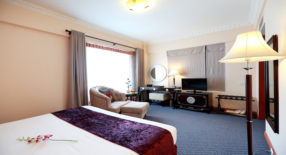 SUPERIOR room has elegant and convenient design to bring guests a feeling of comfort and friendliness at reasonable price. The room has LED TV with various satellite channels, King-size or Twin bed with high-quality mattress, blanket, bedsheet, pillows, classy bathroom with bathtub and massage-capable shower.